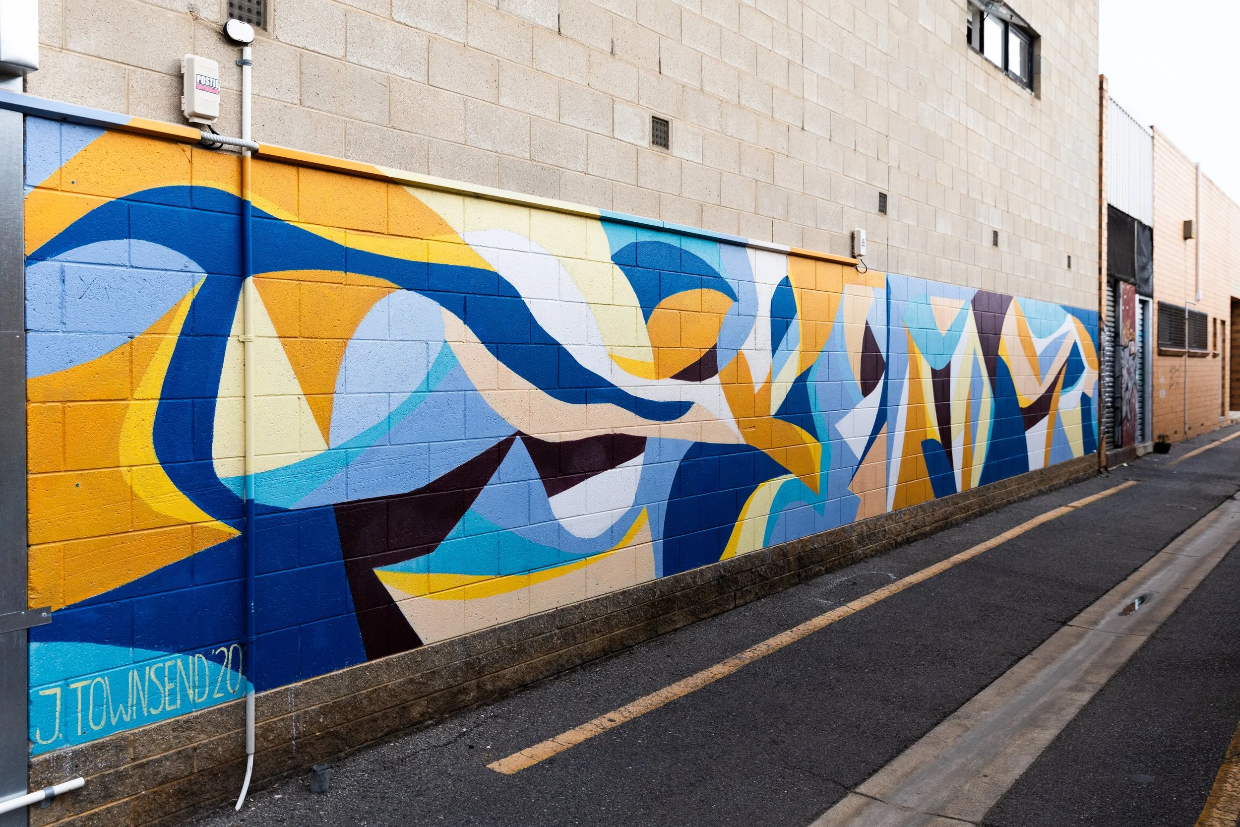 Abstract colours of the beach and sea gently curving and crashing together in a small lane off Rose Street.